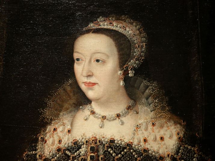 Retrato de Catherine de' Medici (1519-1589),óleo sobre a tela por Germain Le Mannier, c. 1547-1559. Uffizi, Florence. Domínio público